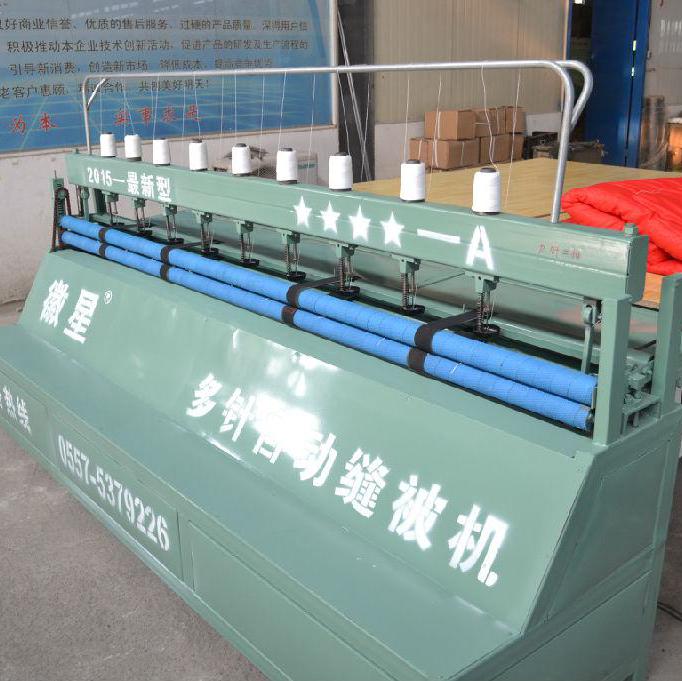 本設(shè)備是生產(chǎn)家庭用棉被、 絲棉被、棉門簾、大棚保溫被、 車載保溫被等新型設(shè)備。